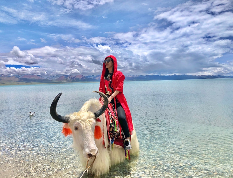 西藏的三大圣湖之一,湖面像一条飘带挂在天地之间,清澈的湖水、巍峨的雪山、如洗的蓝天和朵朵白云融为一体,词语匮乏了,只能用很美来总结了。